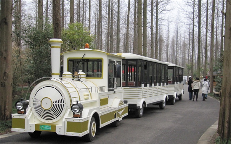 無軌觀光小火車常規的是電瓶的,充一次電可以續航200公里,爬坡的幅度大概是10到15度。