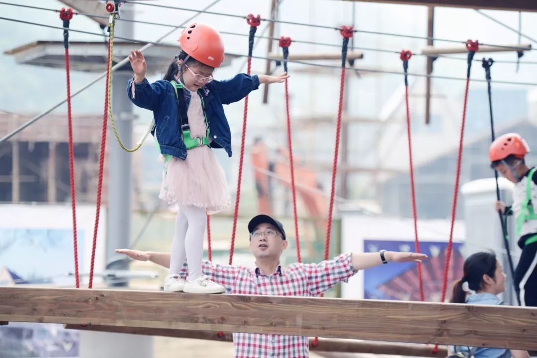 百項繩索攀爬種類,適合不同年齡段游客參與體驗。塔身一共分為4層,主要由18根立柱結構組成,越往上走難度系數越大!花樣挑戰項目,獨木橋、走鋼絲、高空滑行……每一個拓展項目都具備令人放心的安全性,而且還使每一個站點能夠連接多個項目關卡,游客不會受到任何阻礙,可以得到更好的體驗!